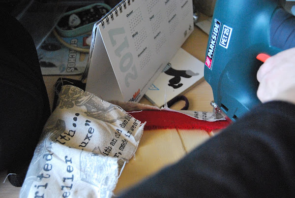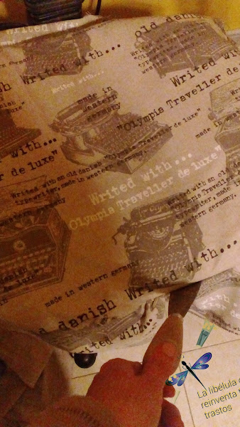 Pues simplemente hay que elegir una tela que nos guste, y que sea gordita, para tapizar o tipo loneta, como la mía. La compré hace un tiempo porque me encantó el estampado con máquinas de escribir antiguas y textos. Y ya era el momento de estrenarla!