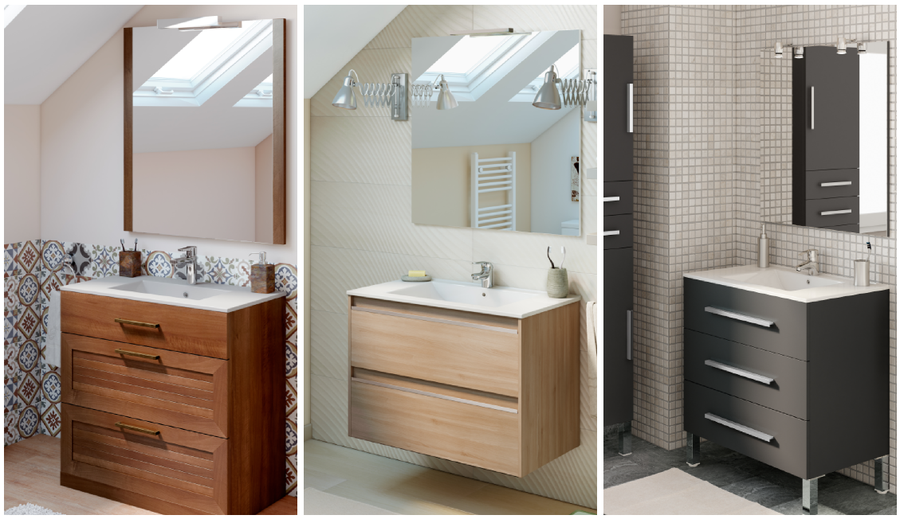 De esta forma, a la hora de escoger el mueble, lo normal es usar como principal referencia el espacio disponible. Así, podemos encontrar modelos de diferentes anchos, que van desde los 50 cm hasta los 120 cm. En cuanto al estilo, hay muchos entre los que escoger: directo al suelo, con patas, suspendidos, con cajones, con puertas, con acabado en brillo, en mate... En cualquier caso, debemos tener en cuenta que todos los muebles de baño deben ser hidrófobos, es decir, resistentes al agua.