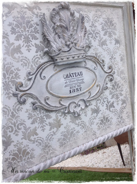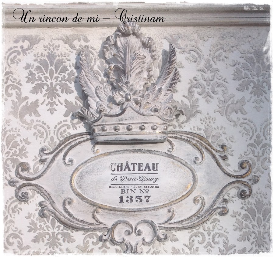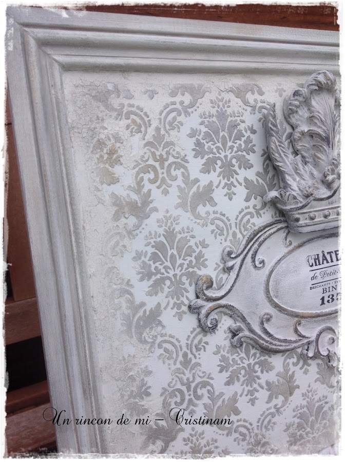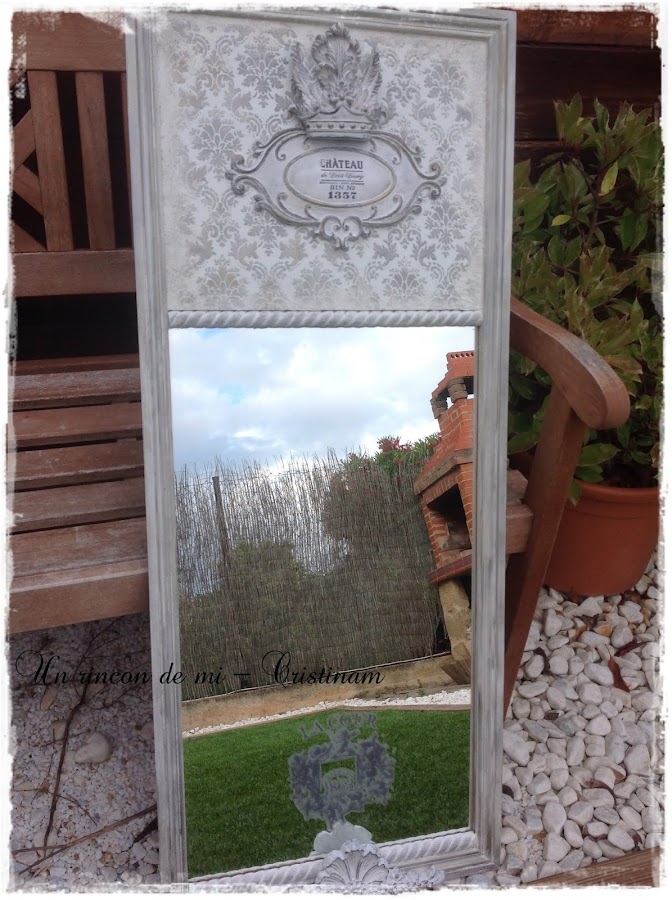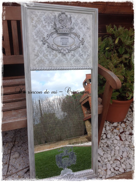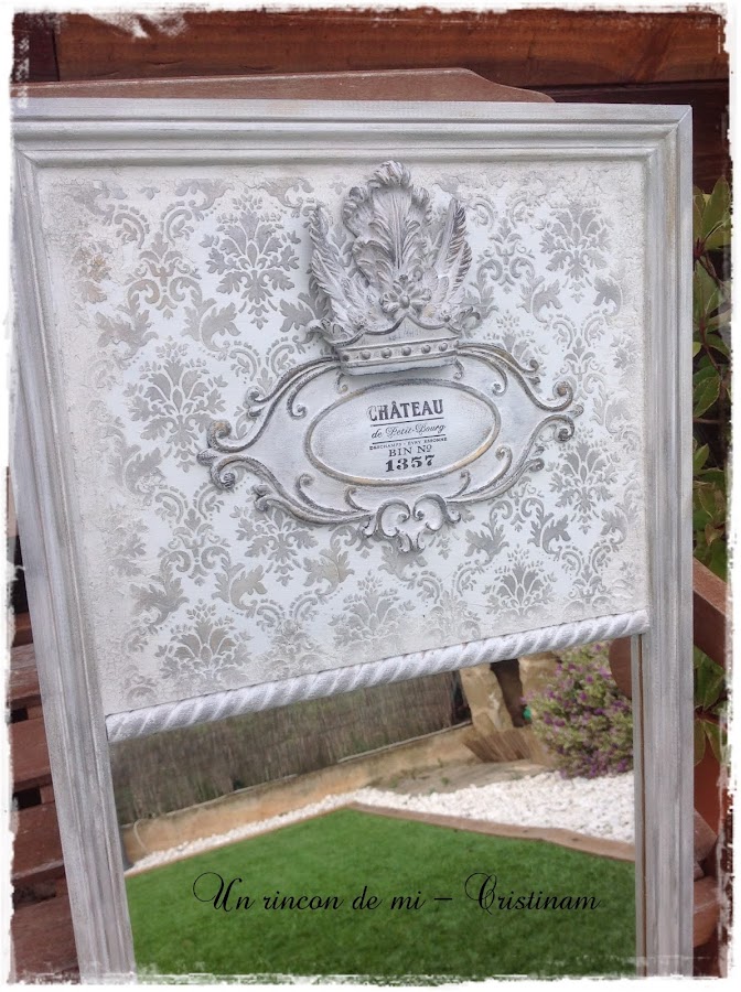 Para la pieza que he cubierto del espejo, con stencil, pasta , y mis maravillosas molduras he terminado de decorar mi espejo.