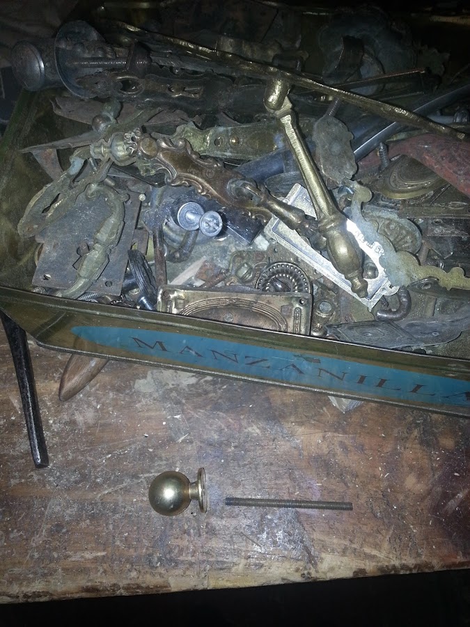Con un tirador de los cajones, (Que ya no usaremos), un trozo de rosca que tengo en mi caja de los viejos tiradores y una tuerca lo pondré en el espejo viendose un bolinche.