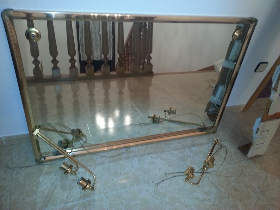 La entrada de hoy, la considero un reciclado de los mios. En el baño había un espejo dorado con unos apliques que tenían sus tulipas de cristal.