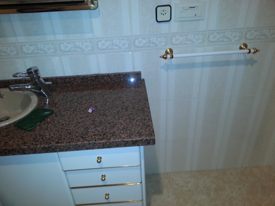 Por problemas de humedad los azulejos estaban totalmente huecos con el consiguiente peligro, de que se nos pudieran caer encima. Por lo que un profesional los picó y los puso nuevos.