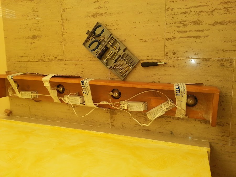 Esto es lo que tiene por dentro, los halógenos son de los viejos que gastan muuucho, por lo que mi marido quitó los transformadores, que los usa para otros arreglos, con el cable hace la instalación de una lampara que ya que publicaré, Y con lo que nos queda, haremos el punto de luz para el baño que tenemos entre manos.