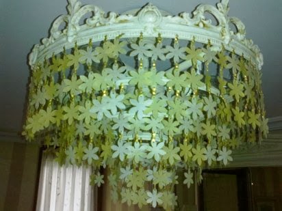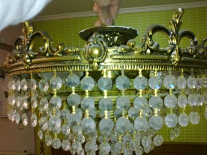 Esta es una lampara que hice el año pasado, la tipica de cristalitos y bronce,queria algo diferente y decidií cambiar su aspecto.