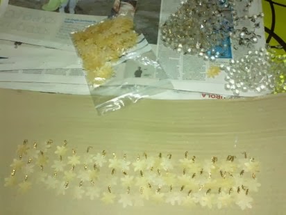 Compre un troquel con forma de flor y utilizando los ganchitos originales fuí uniendolos en fila de tres..