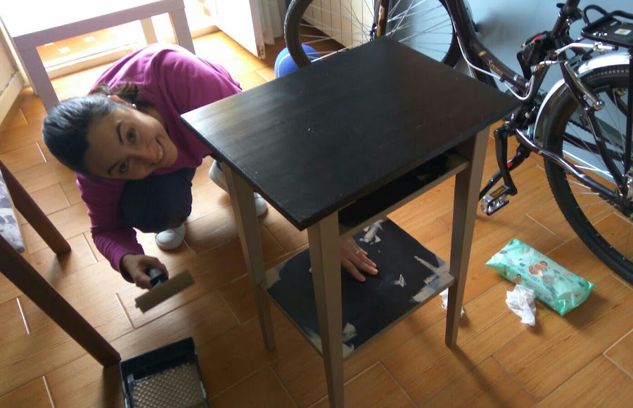 Esta mesita de la entrada (también completamente negra) también dio un cambiazo espectacular!!!! Claro que con la silla que luce a su vera queda sensacional.