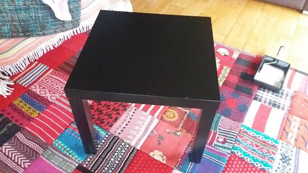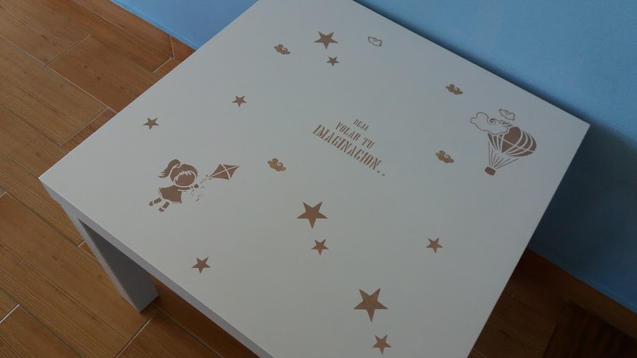 La mesita pequeña la hice con detalles infantiles, con la ayuda de unas plantillas de dibujos graciosísimos