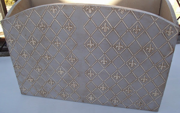 Y entonces fue cuando empecé a pensar que en la parte frontal le vendría bien un adorno, pero no acababa de encontrar nada que me encajase. Hasta que me rendí a hacer las dos palabras en estaño, Le Journal, puesto que va destinado a contener principalmente la prensa del fin de semana.