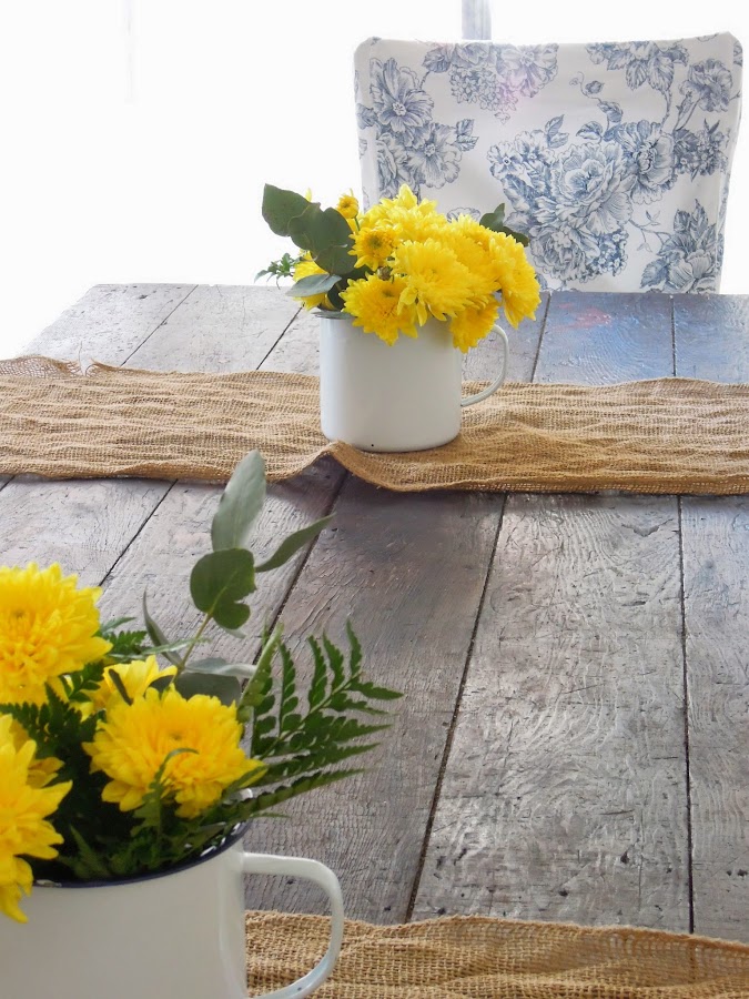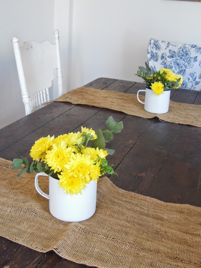 jarros esmaltados blancos y flores amarillas...
