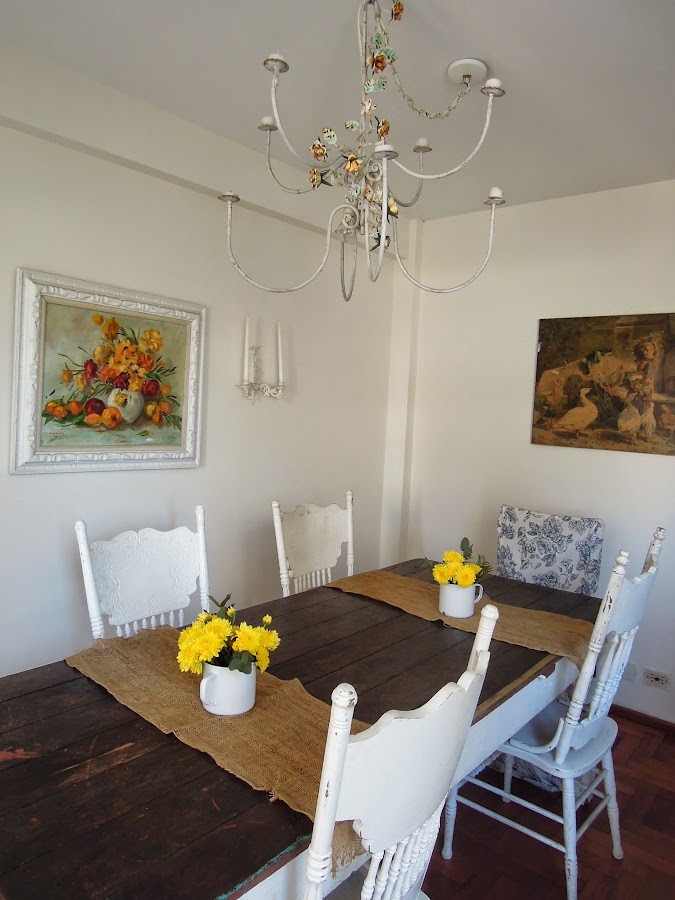 La mesa del comedor recibió 2 retazos de arpillera