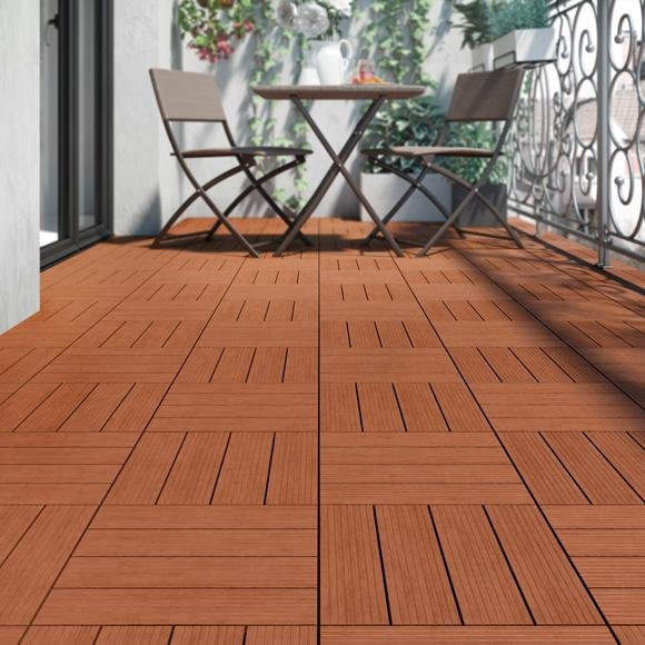 - Baldosas de composite de madera con base plástica de teca.