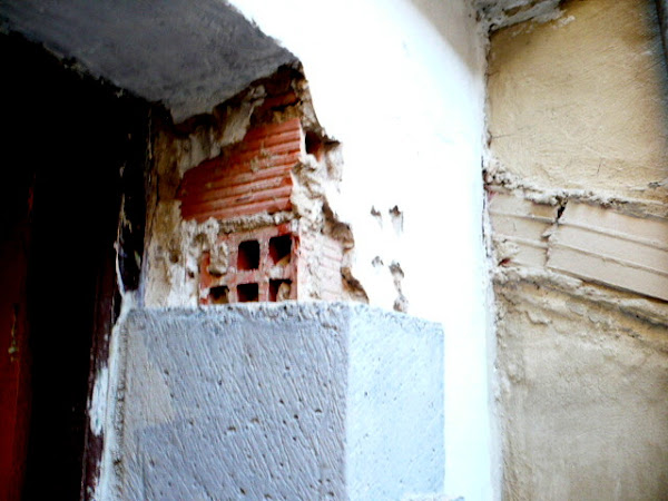 Para que la pieza quede bien adherida a la pared se le suelen hacer unos picados en la superficie, para que la masa agarre bien en la pared y sujete perfectamente la pieza. En este caso ha sido mas sencillo levantar la masa hasta el ladrillo, y de esta forma me aseguro mejor que no se moverá.