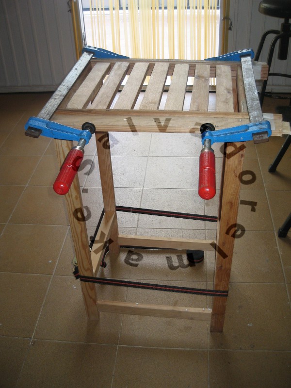 Después cola, gatos de carpintero y a esperar que esté seco.
