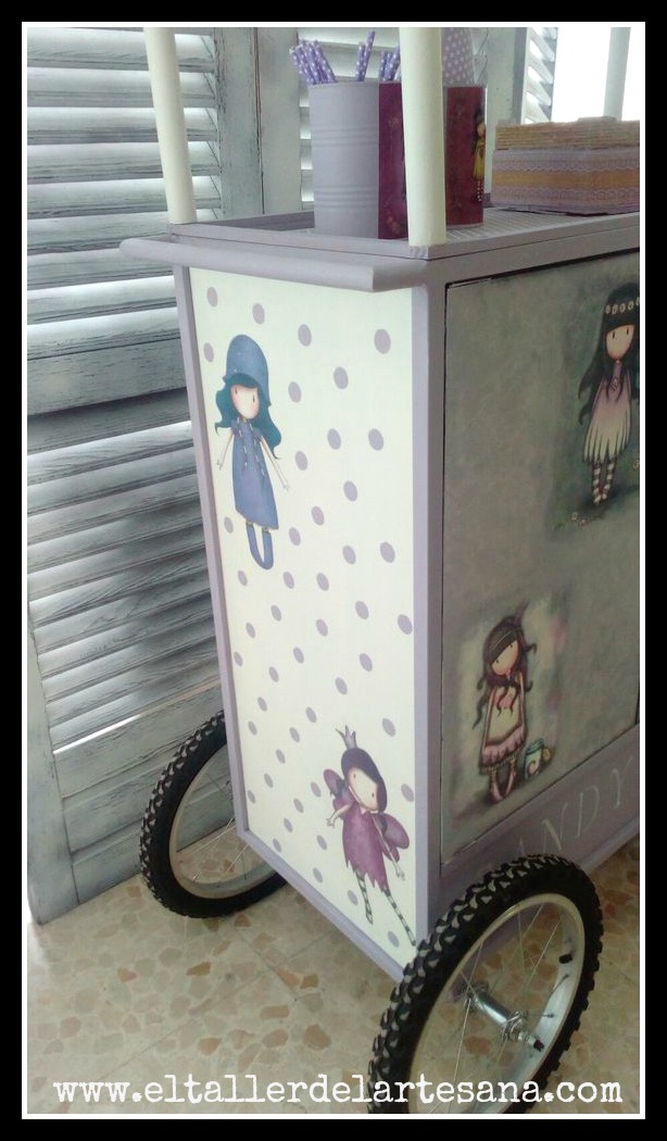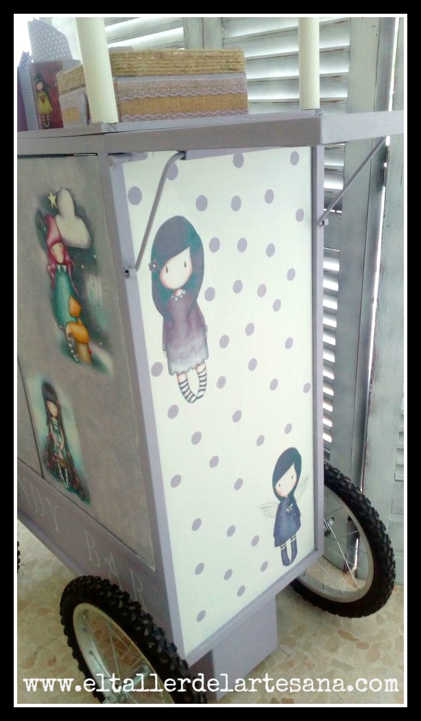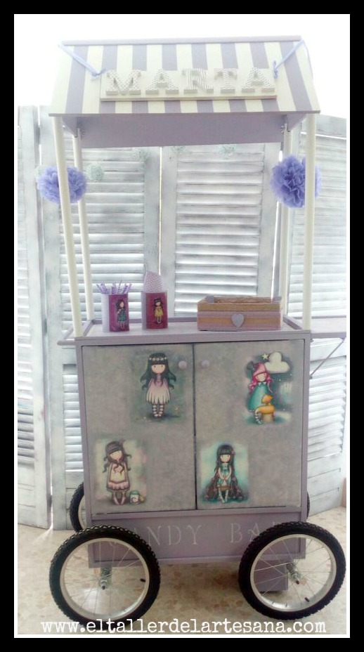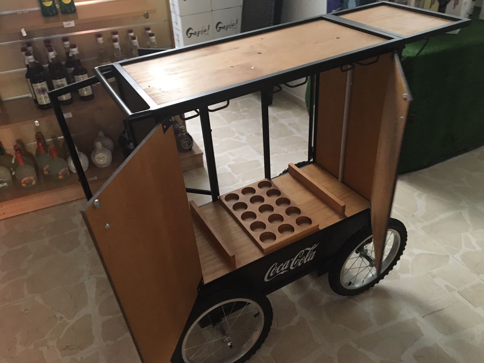 Como aparte de los muebles y complementos de decoración también estoy haciendo cositas para decoración de eventos sobre todo bodas y comuniones, el trabajo que hoy os quiero enseñar es muy especial. Se trata de la transformación de un carro de bebidas en un carro dulce para una comunión. Nos ha dado mucho trabajo ya que además de la decoración también teníamos que hacerle la estructura del tejado para que pareciera un carrito dulce de verdad. Os enseño como era antes cuando nos lo trajo el cliente.