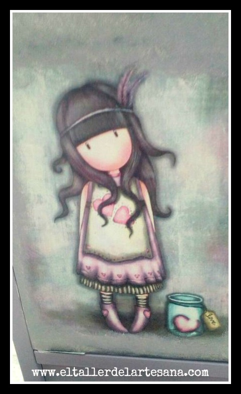 En el frontal las imágenes de las gorjuss las he integrado con esponja y tonos malvas, grises...
