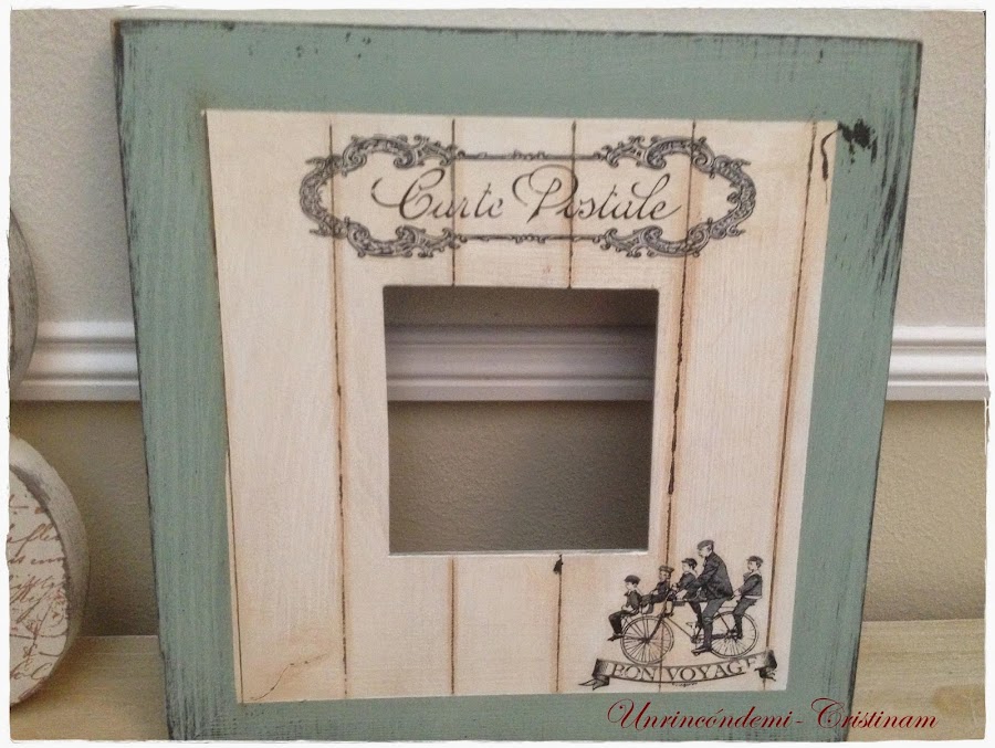 He usado un tono azul verdoso precioso!! muy vintage y luego he pintado encima con un tono blanco roto....