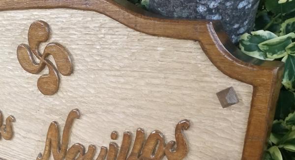Tanto las letras como el marco están teñidas y toda la talla está protegida con lasur al ser para exterior.