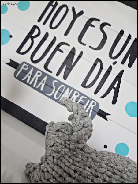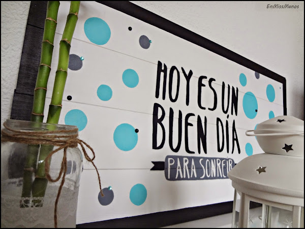Y esto es un cartel (como siga con los carteles al final no me va a quedar pared en blanco...), que hice con una madera que encontré un poco destartalada, pero estaba ya pintada de blanco y sin rallajos y era una pena dejarla ahí...