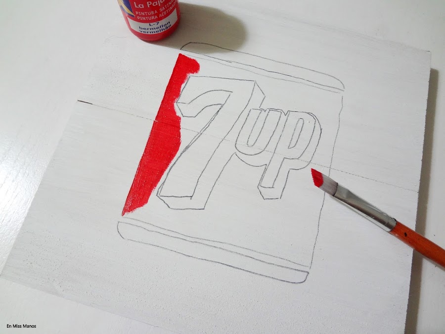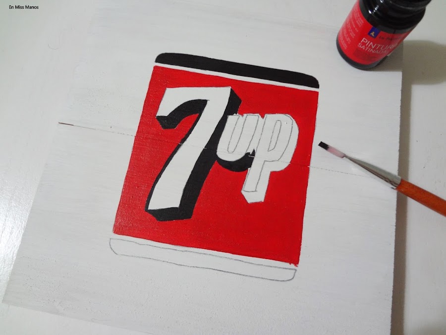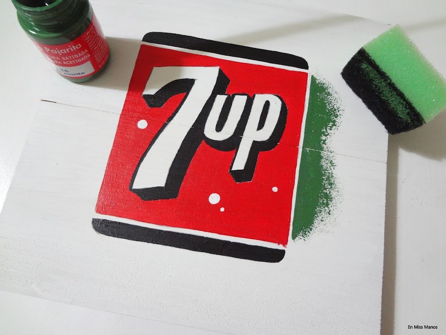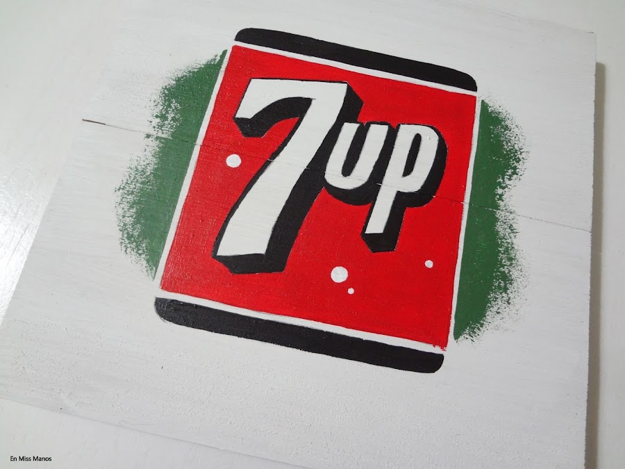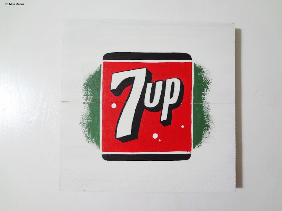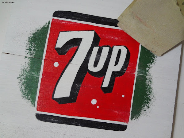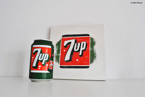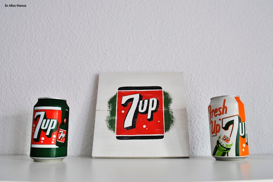 Cuando empecé con el blog tuve una época de hacer mucho cartel pintado a mano a pulso, así que aprovechando un arrebato que me dio al ver unas latas vintage que han sacado del refresco 7UP hice otro pequeño cartel con efecto vintage.