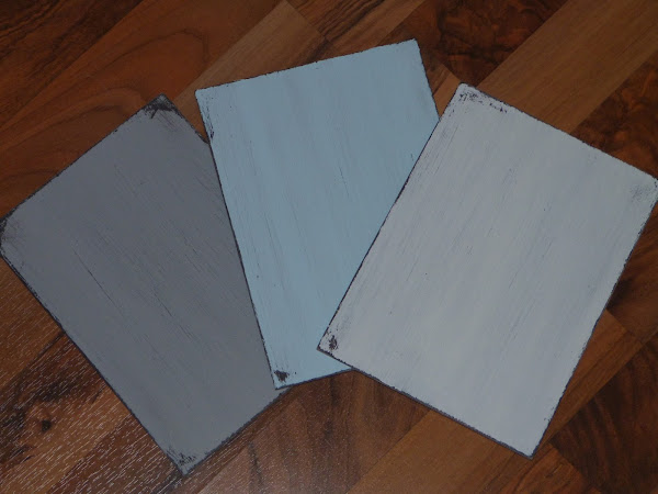Después, he pintado las tablas en tonos claros: blanco, gris y celeste. Un par de manos y a desgastar con lija, insistiendo sobre todo en los bordes y las esquinas.