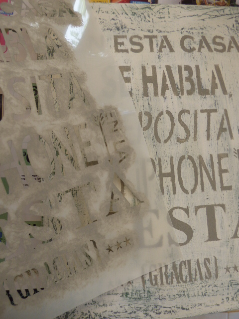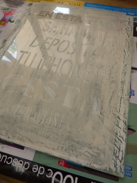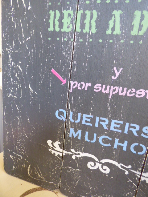 Y una vez seco el estarcido le dí cera vintage a todo el cartel