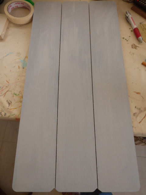Había que taparle bien ese estampado tropical, asi que le dí un tono gris, que cubrió en una sola pasada.