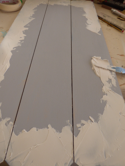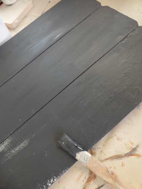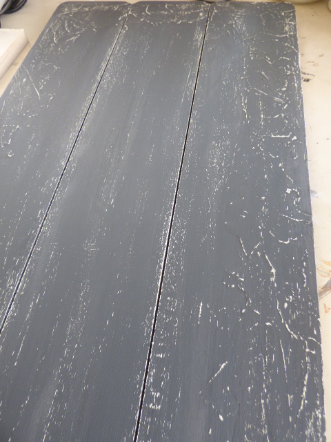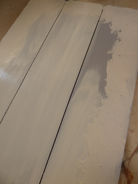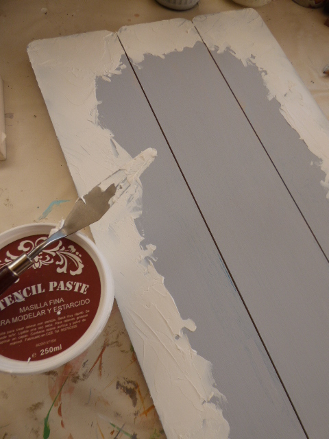 ....y luego todo de gris oscuro. Quería conseguir el decapado con el tono claro debajo para que, sobre el oscuro, destacaran más los colores pasteles que iba a utilizar con el stencil