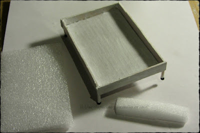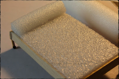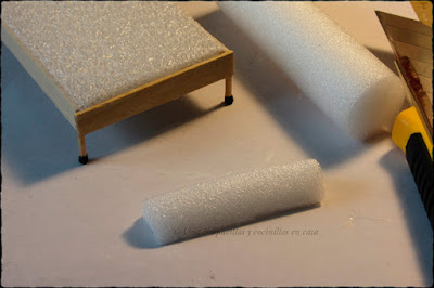 Con espuma de polietileno de un embalaje hice lo que va a ser el colchón con ayuda de un cutter.