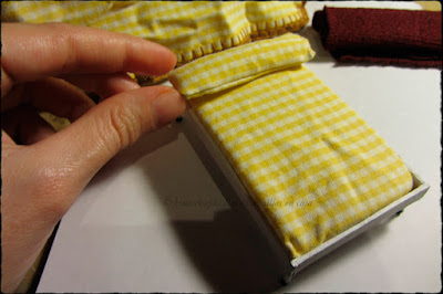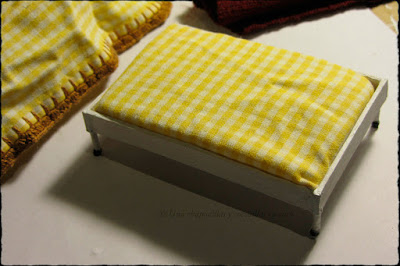 Ahora hay que poner unas sabanas al colchón y su colcha correspondiente, para ello use retazos de tela que tenía por ahí.