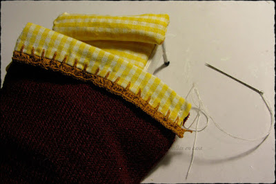 Cosí el borde de la vieja servilleta al otro trozo de tela que va a hacer de colcha.