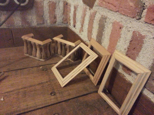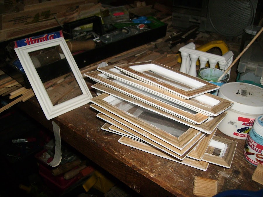 Este es el montón de ventanas, las cuales son listones que yo corto a inglete, pinto y pongo un plastico rígido a modo de cristal.