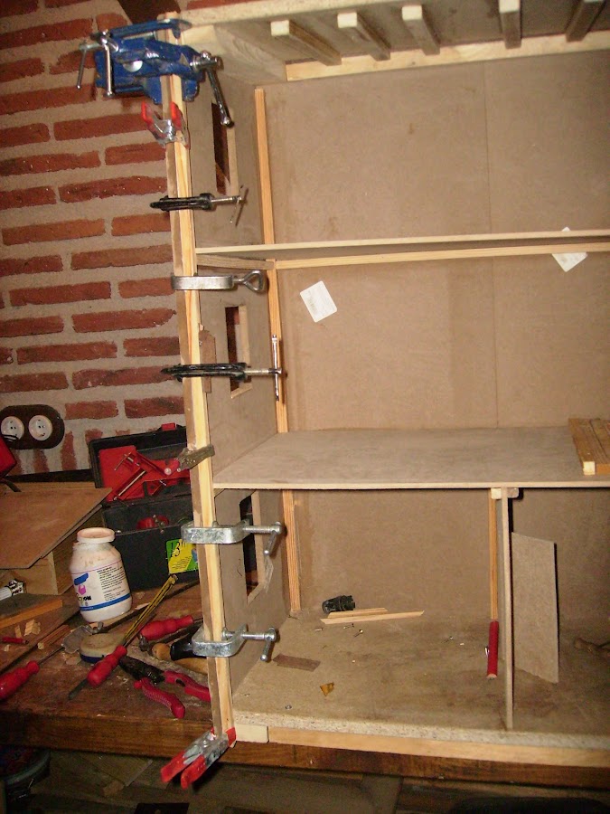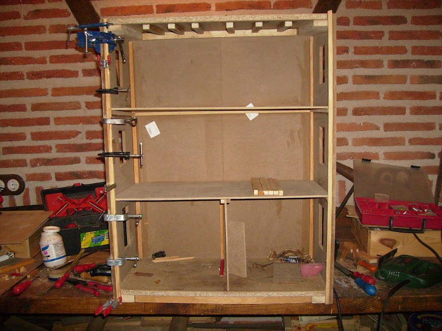 Con dm de 8mm hago los suelos de las distintas plantas, que van sujetos en unos perfiles en todo el perímetro del interior.