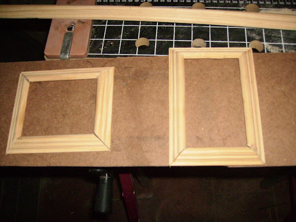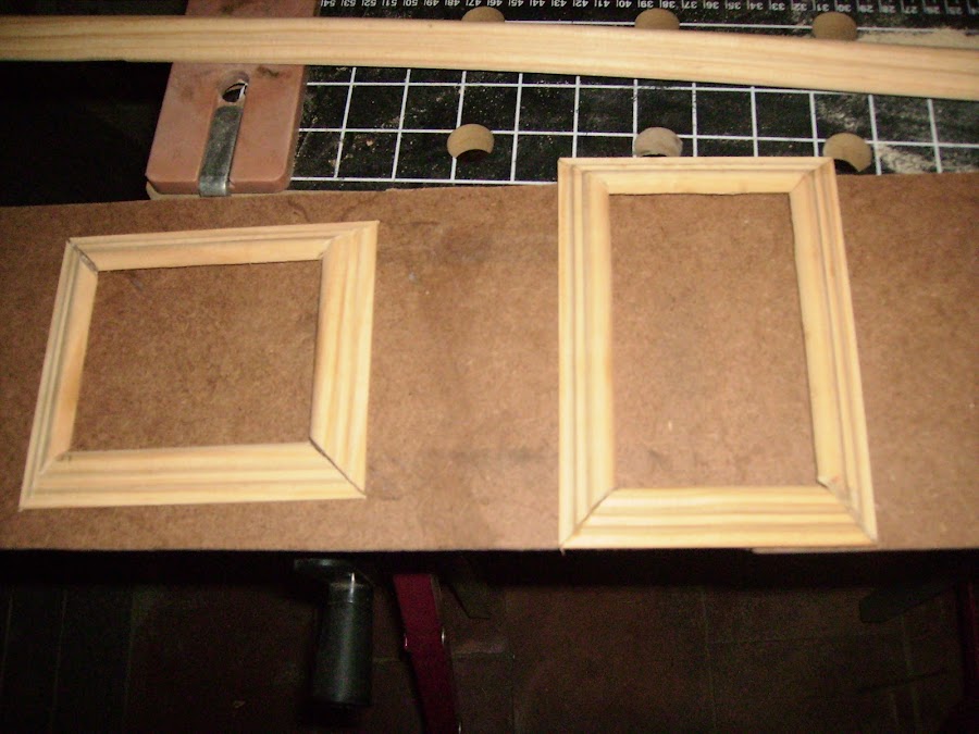Estas son las ventanas, los ingletes como se aprecia en la foto no me salen del todo bien, por lo que tengo que dar masilla, para rellenarlos, pero como luego irán pintados, no se notará.