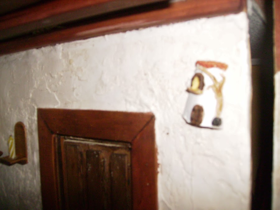 A las paredes las doy una mezcla de aguaplas,cola y arena para que tengan textura.