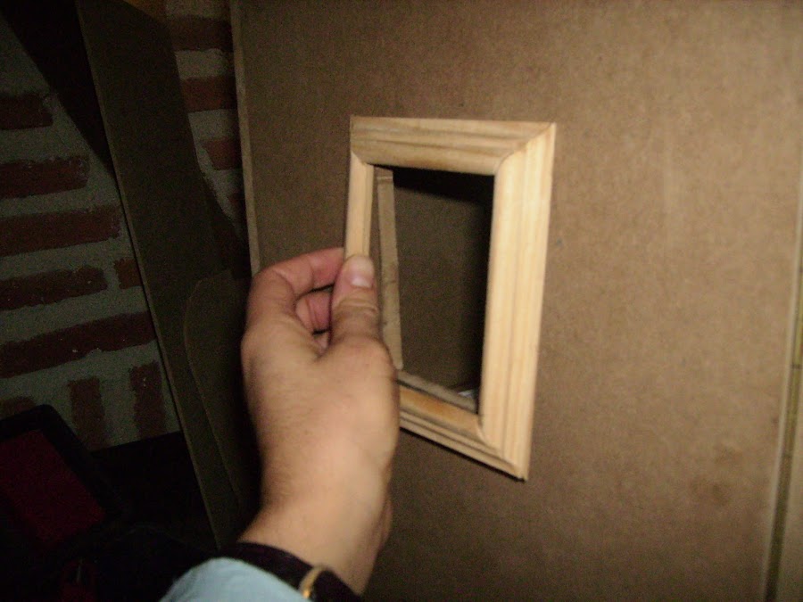 Estos marcos de las ventanas le pongo un plástico rígido a modo de cristal impidiendo también entre polvo en el interior de la casita.
