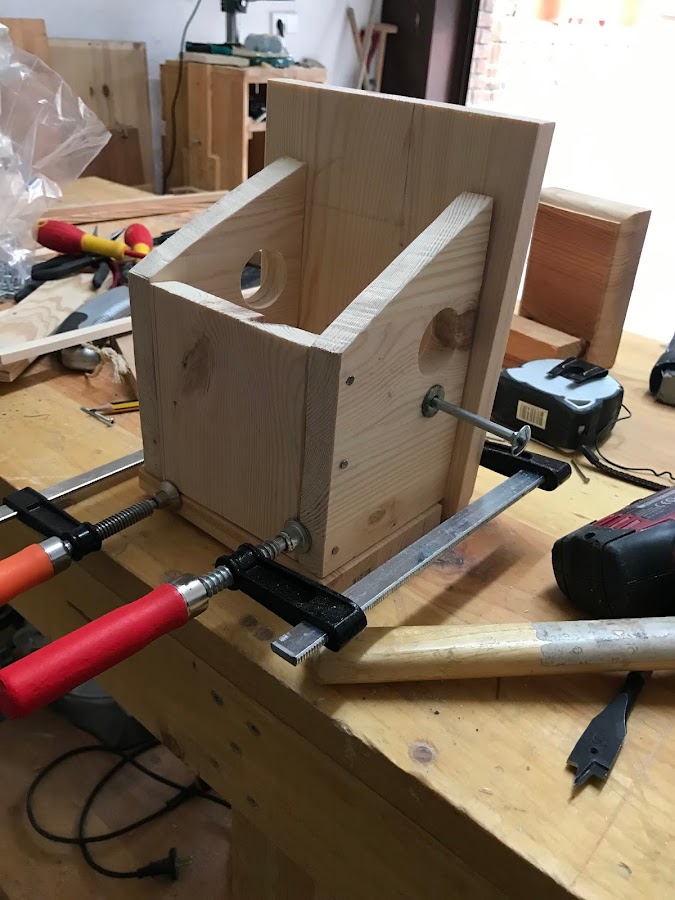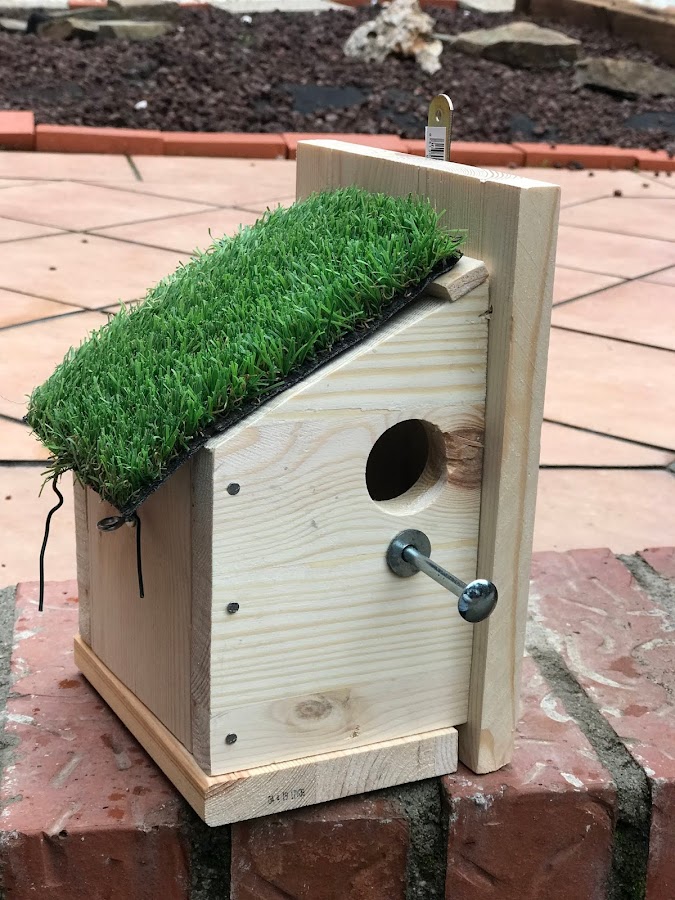 Por si surjen dudas; esta casita estará colocada debajo de un tejadillo protegida de la lluvia. Por eso, ni la he barnizado ni le he colocado un tejado mas rigido.