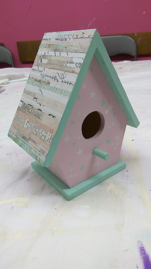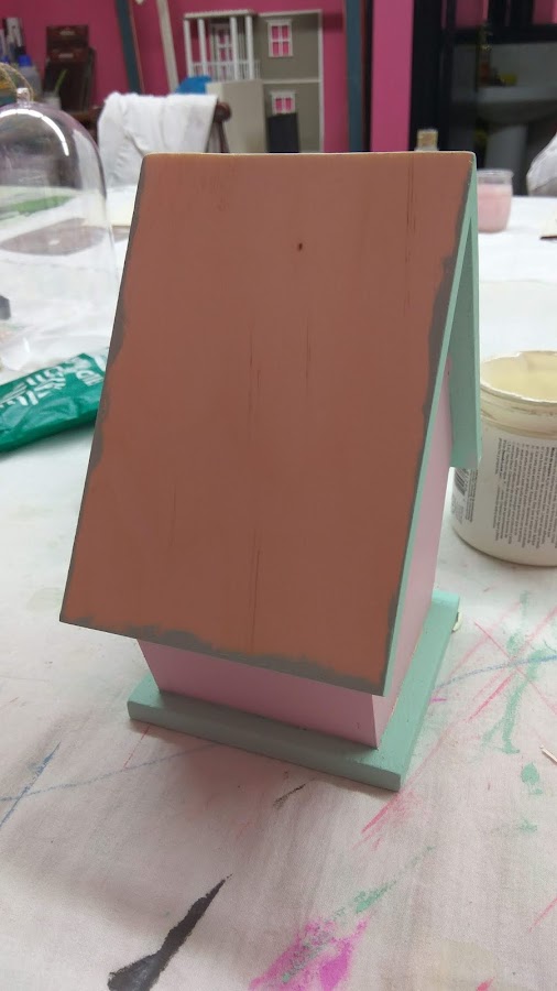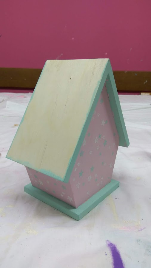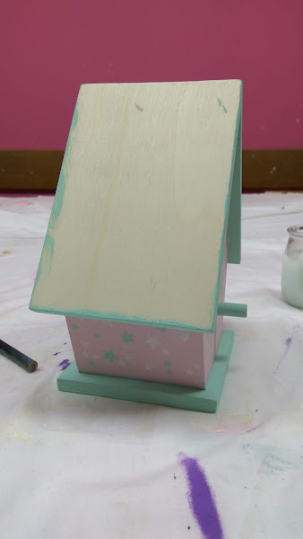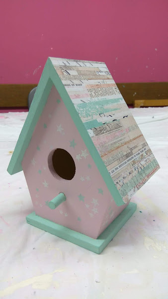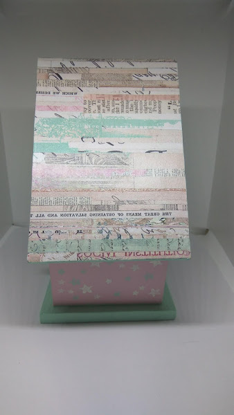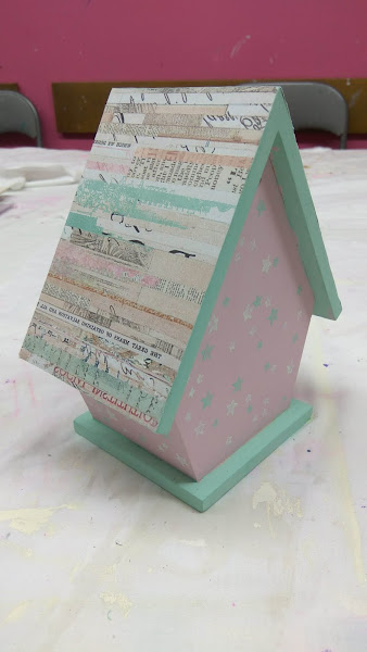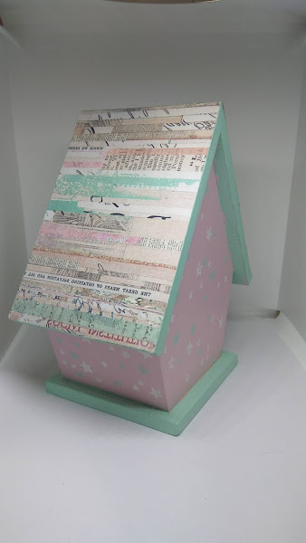 PASO 4: Para el tejado, utilicé un papel decorado, bien encolado y después recortando el papel sobrante de las esquinas cuidadosamente con un cúter.