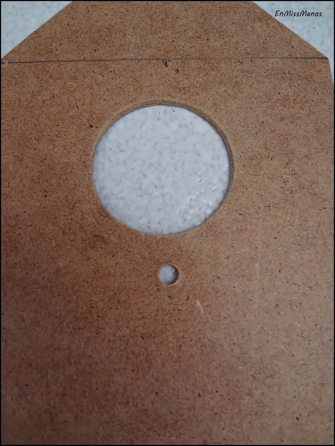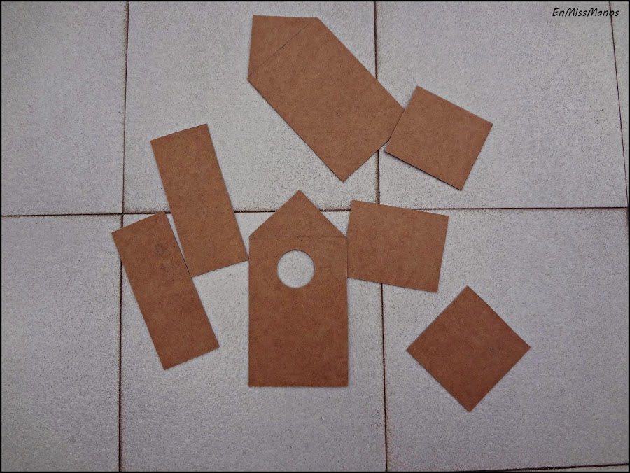 Marcar en la madera todas las partes, cortar y hacer el agujero de la entrada para el pajarito.