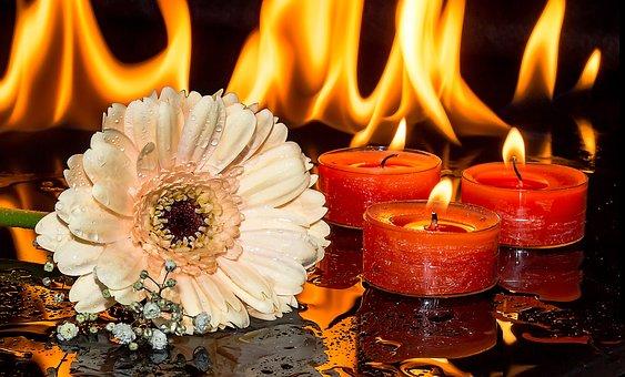 Pon las velas en el agua: ya con los otros elementos listos y en su lugar, coloca entonces las velas encendidas en el recipiente.