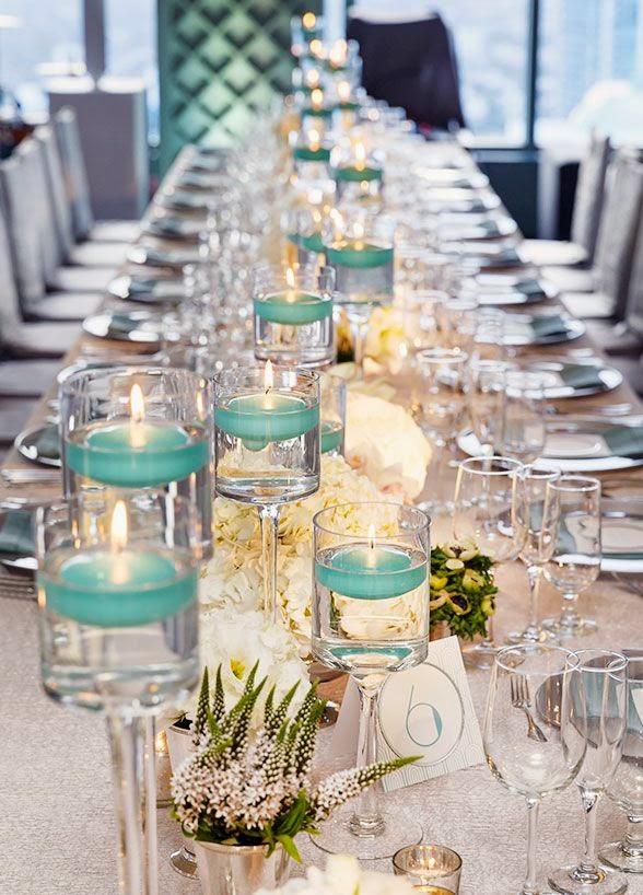 Arreglos de mesa con velas flotantes y flores