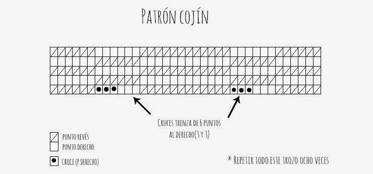 *Es para un relleno de cojín de 40x40cm, en caso de tener un relleno de 50x50cm con hacer tres o cuatro puntos más en cada extremo valdría.