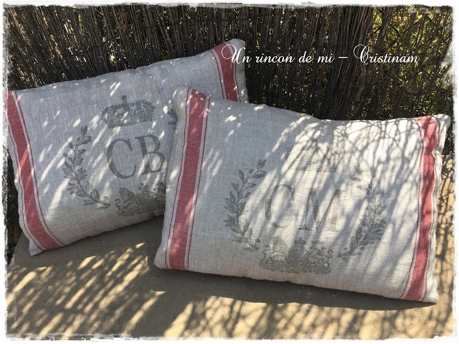Esta vez os enseño estos cojines que he realizado en un estilo vintage rústico que adoro.