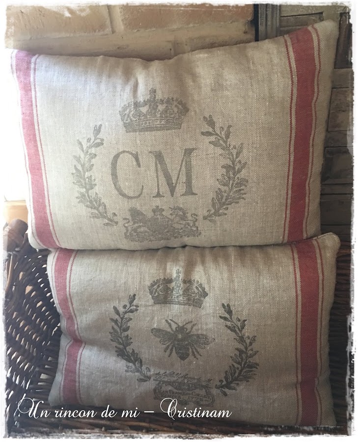 Esta vez os enseño estos cojines que he realizado en un estilo vintage rústico que adoro.