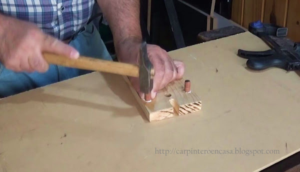 Agregamos, dos tarugos de 10 mm de diámetro en las perforaciones laterales de misma medida. Con cola.