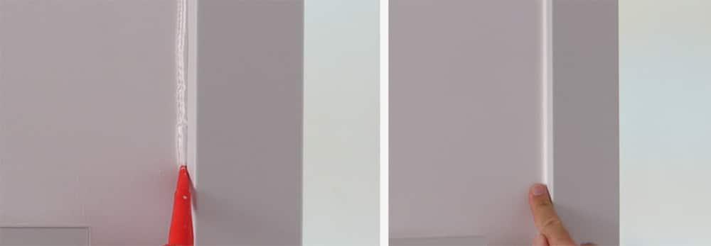 Tapo las juntas entre el tapajuntas y la pared con un sellador de color blanco. Esto le dará un mejor acabado y protegerá la zona de la suciedad y la humedad.