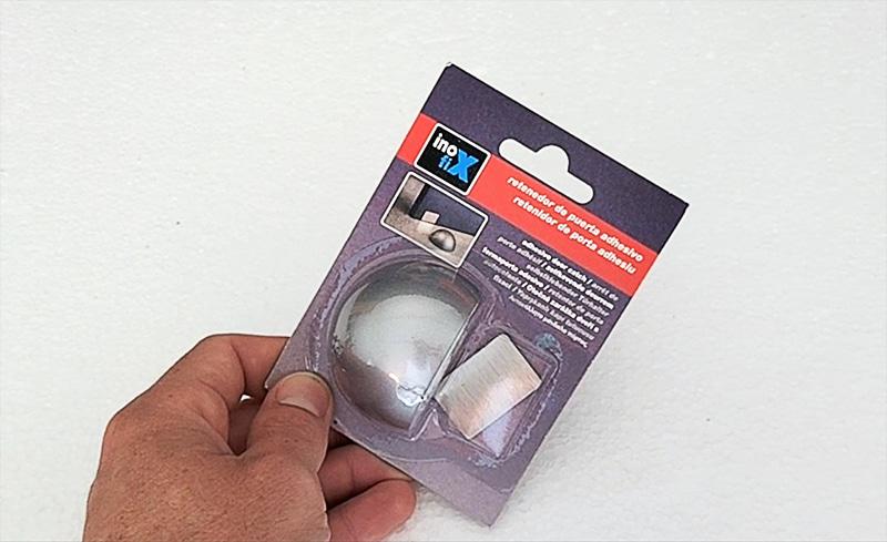 Por último voy a instalar este retenedor y tope adhesivo con imán de Inofix con el que protegeré la puerta y la pared de golpes y portazos.