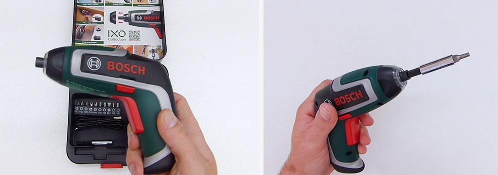 Se trata de un atornillador compacto y potente. Le colocamos la extensión de las puntas para trabajar más cómodamente con él y la punta hexagonal.