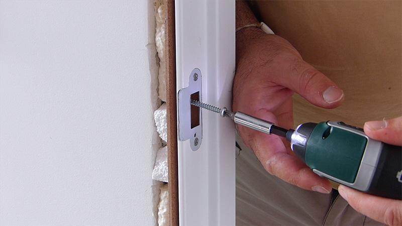 Repetimos este mismo paso en el otro lado a la altura de la cerradura. De esta manera no agujerearemos el marco.
