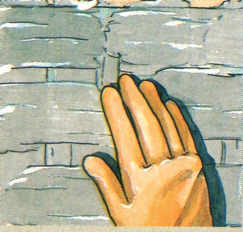Y antes de que la masa se haya secado pase la palma por encima de la pared con enduido, pero sin presionar de tal modo que la superficie mantenga las irregularidades.