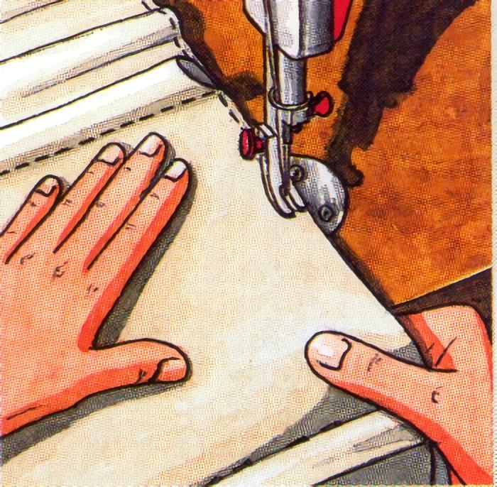 Haga los bolsillos con pellizcos de tela. Sujete con alfileres la cavidad para las varilla, hilvánelas y cósalas en perfecta horizontalidad.